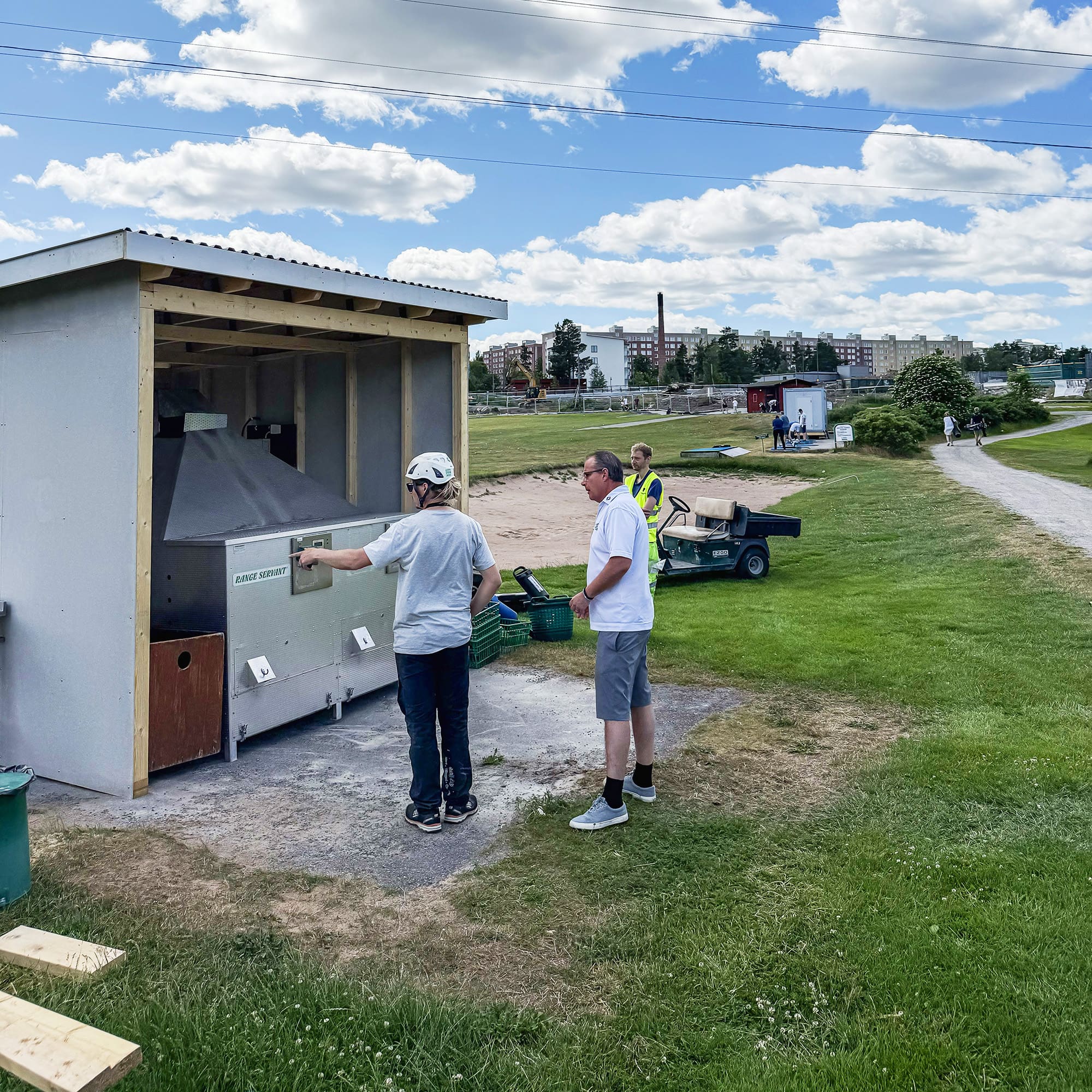Samtidigt håller vi golfupplevelsen levande! Driving rangen är öppen som vanligt, med en liten nyhet: bollhuset och klubbtvätten har flyttat och finns nu i ett nybyggt hus till vänster om fairwaybunkern.