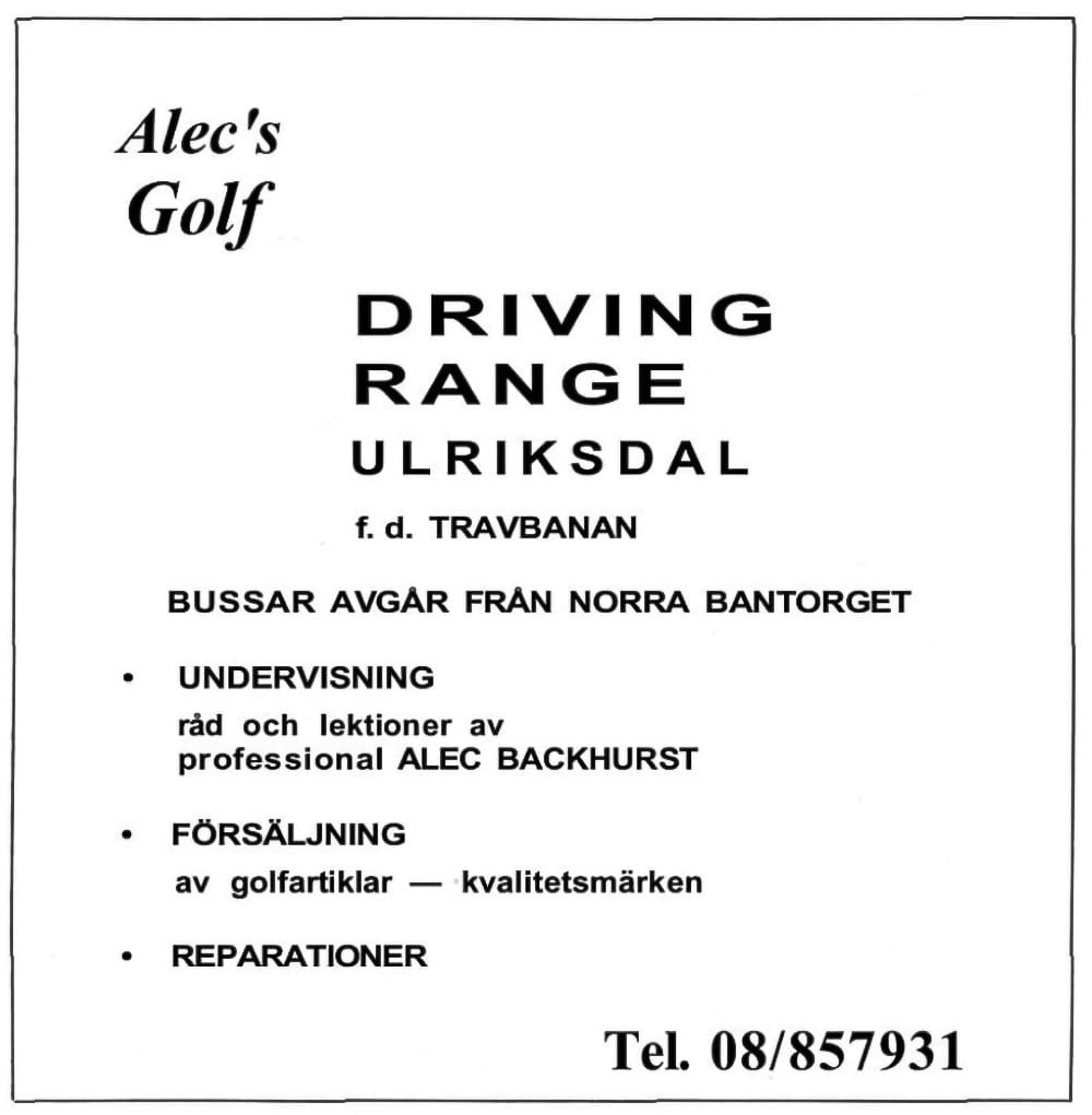 Alec’s Golf vid Ulriksdal, norr om Stockholm, har bytt ägare. Alec Backhurst, som drivit anläggningen sedan 1969, har sålt verksamheten till Nils Bertlin AB, ett detaljhandelsföretag i Stockholm, efter att ha flyttat tillbaka till England. Golfanläggningen består av en drivingrange, en 18-hålsbana och andra faciliteter. Marken ägs av Solna kommun och det finns ospecificerade planer på bostadsbyggen i området.