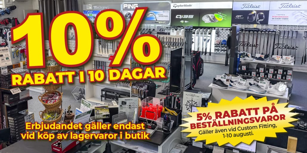 Vi har flyttat – och det firar vi med 10 dagar av golfglädje och fina erbjudanden! Efter en intensiv period av flytt och förberedelser har vi nu kommit i ordning i vår nya butik i Tyresö – och det vill vi så klart fira tillsammans med dig!